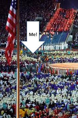 I ushered the great country of Azerbaijan into the games proudly holding their county’s sign alongside the flag bearer. I call them a great country and it has nothing to do with their politics which I know very little about. What I know is about the athletes that represented their country in 1996. It was their first year competing as an independant country after breaking off from the “Unified Team” also known as Mother Russia. Azerbaijan’s uniforms were mismatched and used. Russia looked smashing in their red suits and hats. (Did you think I would get through this blog without a little fashion commentary?!?) It was clear they had little resources and training opportunities but they had a lot of ambition and a plan to win. At closing ceremonies we gathered again for a celebration in the stadium. It was truly exciting to see these inspiring athletes wearing medals they had won. They were singing and dancing with athletes from all over the world. As for me, I was just proud to be a part of the biggest moment in their life and wear a silver medal won by a hot wrestler named Namik!